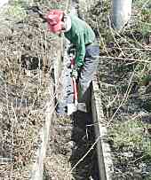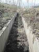 ■排水路とは、田んぼから水を抜く時や余り水を流す水路のことを言います。1本の排水路に何枚もの田んぼの水が流れますので、U字溝が水を入れる水路に比べて大きくなっています。その土砂やゴミを取り除いたりする作業が排水路払いです。やはり共同で使用しますが、自分の田んぼの部分は自分で掃除します
