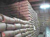 ●印が押されたものから米倉庫に積み上げられ、売れるまで厳重に保管されます。
