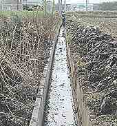 ■排水路とは、田んぼから水を抜く時や余り水を流す水路のことを言います。1本の排水路に何枚もの田んぼの水が流れますので、U字溝が水を入れる水路に比べて大きくなっています。その土砂やゴミを取り除いたりする作業が排水路払いです。やはり共同で使用しますが、自分の田んぼの部分は自分で掃除します