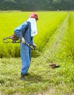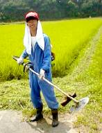 石などに気をつけて、地面滑らすように草を刈っていきます。