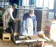 ■稲の種を播く作業です。育苗箱に土を入れ播きます。土はPH(酸度)が調整され適度な肥料も入った育苗専用の培土を使います。 標準は1反当たり4kgの種籾を使用しますが、薄蒔きの方がしっかりした太い苗に育ちますので、できるだけ薄蒔きにします。