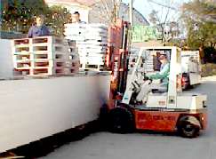 スペースを有効に使うため、パレットで3段重ねで積み上げます。