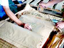 ■昨年印刷した30kg出荷用米袋で、未使用袋の年産の部分を訂正する作業です。